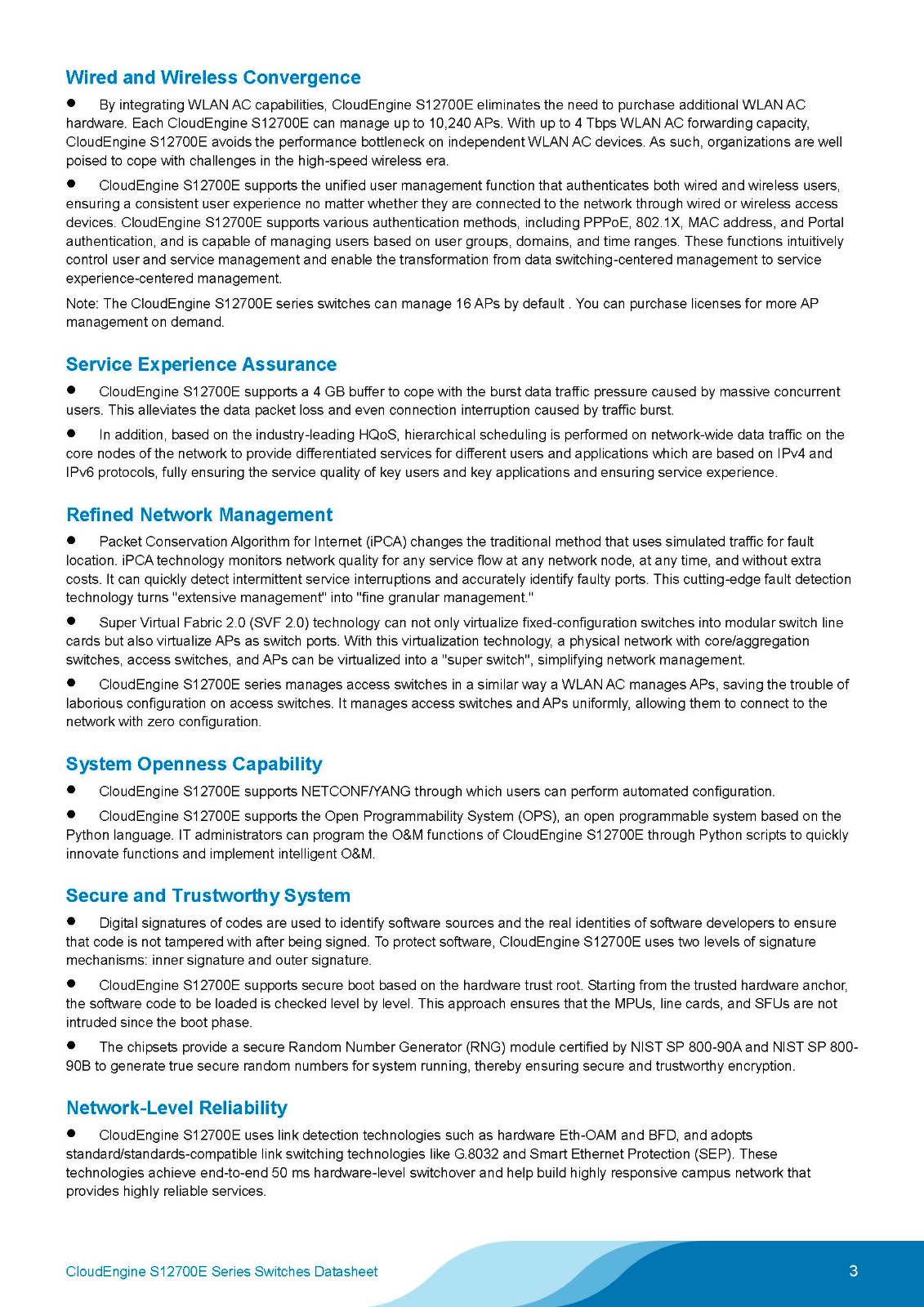 CloudEngine S12700E enables wired and wireless convergence, full-stack openness, and smooth upgrades at the core layer of high-end campus networks. As flagship core switches in Huawei's CloudCampus portfolio, this series enables you to create simplified, intelligent campus networks centered on service experience.