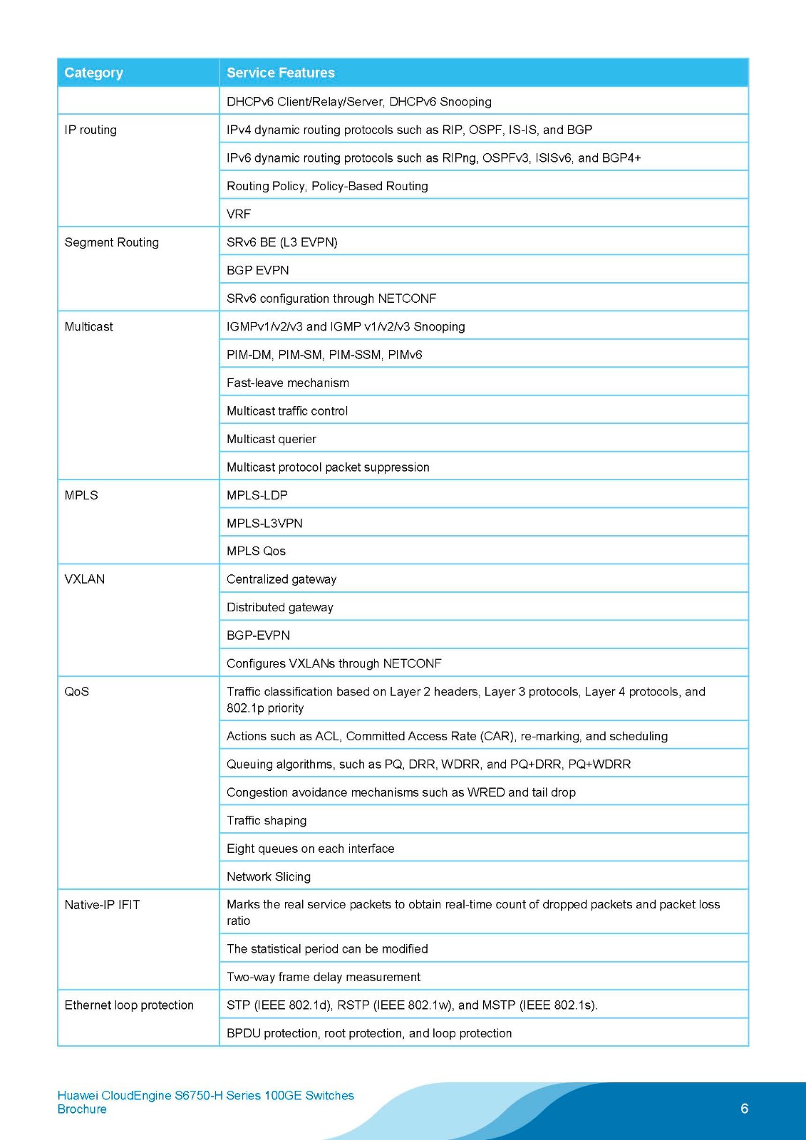 CloudEngine S6750-H series 100GE switches are Huawei's next-generation fixed core and aggregation switches that offer high performance, high reliability, cloud management, and intelligent operations and maintenance (O&M). Built on the industry-leading software and hardware platforms of Huawei, the switches are purpose-built with security, IoT, and cloud in mind. With technologies such as free mobility, VXLAN, SRv6, and slicing, the switches guarantee ultimate user experience and carrier-class reliability. They are ideal core and aggregation switches for building cloud campus networks, helping global customers achieve digital transformation. They are widely used at the core and aggregation layers of large-scale campus networks or at the core layer of small- and medium-sized campus networks in various industries, such as transportation, manufacturing, and education.