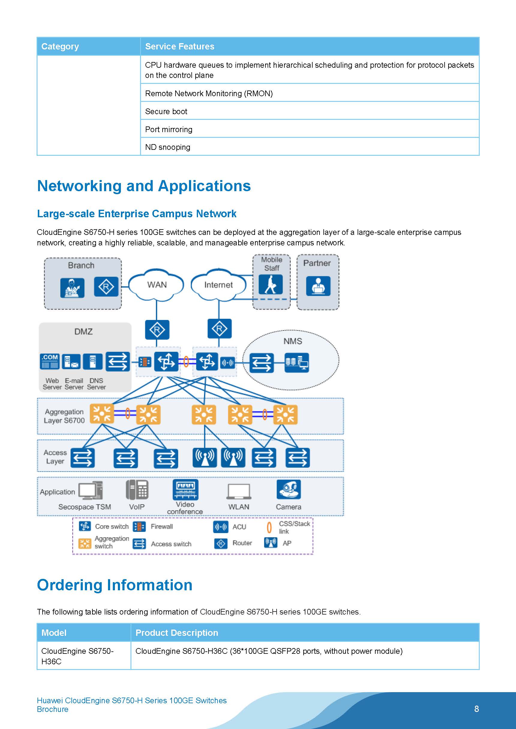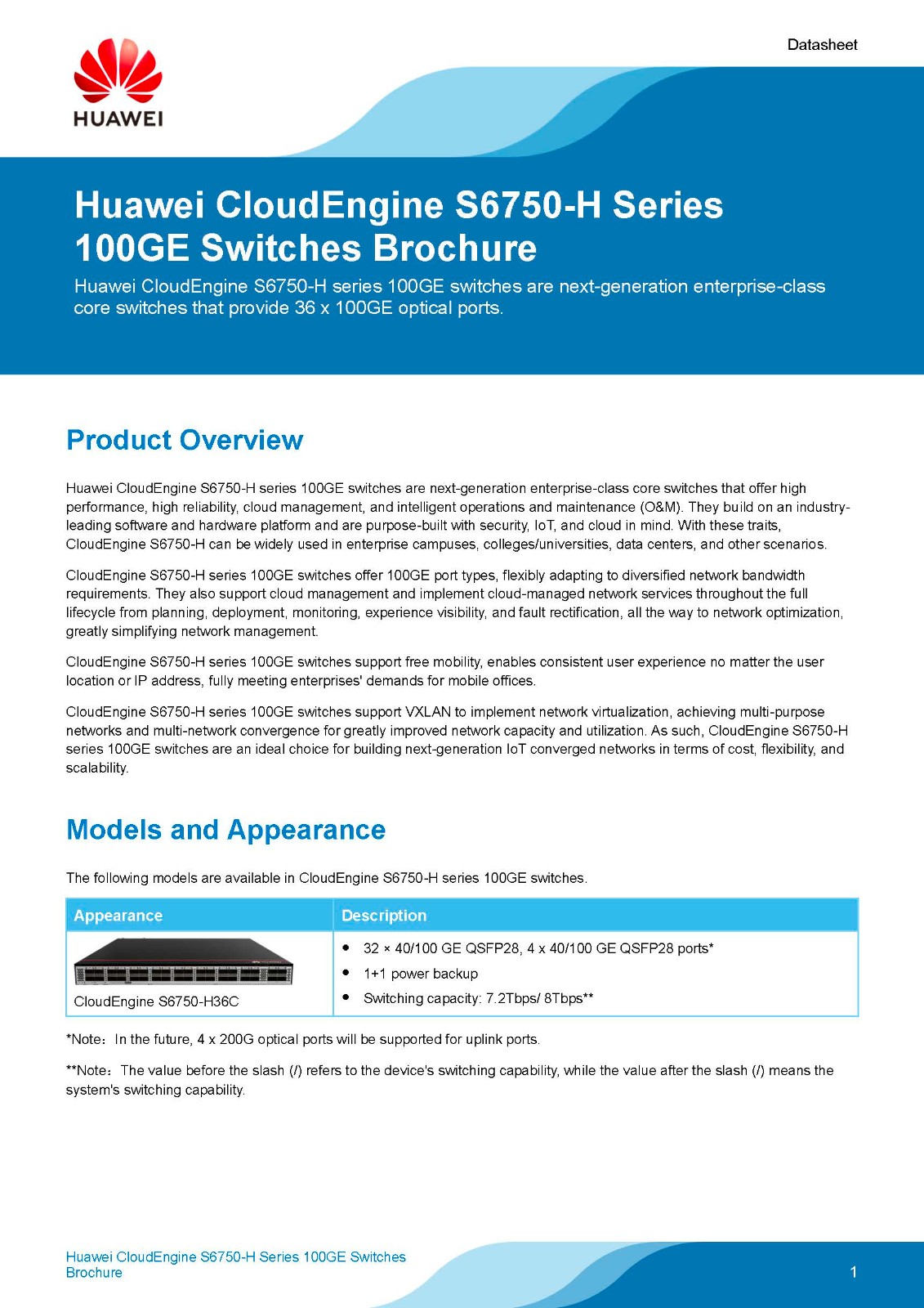 CloudEngine S6750-H series 100GE switches are Huawei's next-generation enterprise-class core and aggregation switches that offer 36 x 100GE optical ports.
