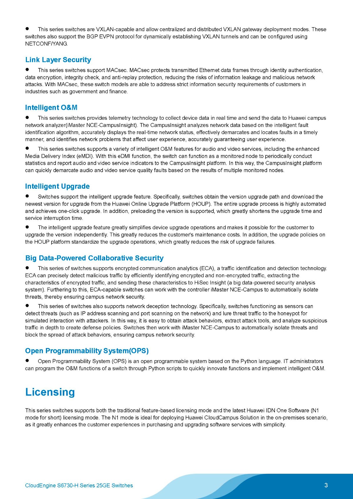 CloudEngine S6730-H Series 25 GE Switches are next generation enterprise-class core and aggregation switches, featuring exceptional performance and reliability, cloud management, and intelligent Operations and Maintenance (O&M).