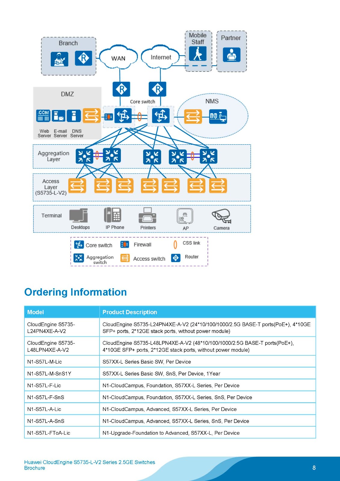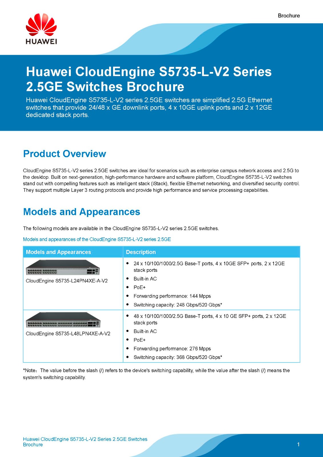 CloudEngine S5735-L-V2 series 2.5GE switches are ideal for diverse scenarios such as enterprise campus network access and 2.5GE to the desktop. Built on next-generation, high-performance hardware and software platforms, CloudEngine S5735-L-V2 series stands out with intelligent stacking, flexible Ethernet networking, and diversified security control. Furthermore, this series supports multiple Layer 3 routing protocols, providing higher performance and more powerful service processing capabilities.