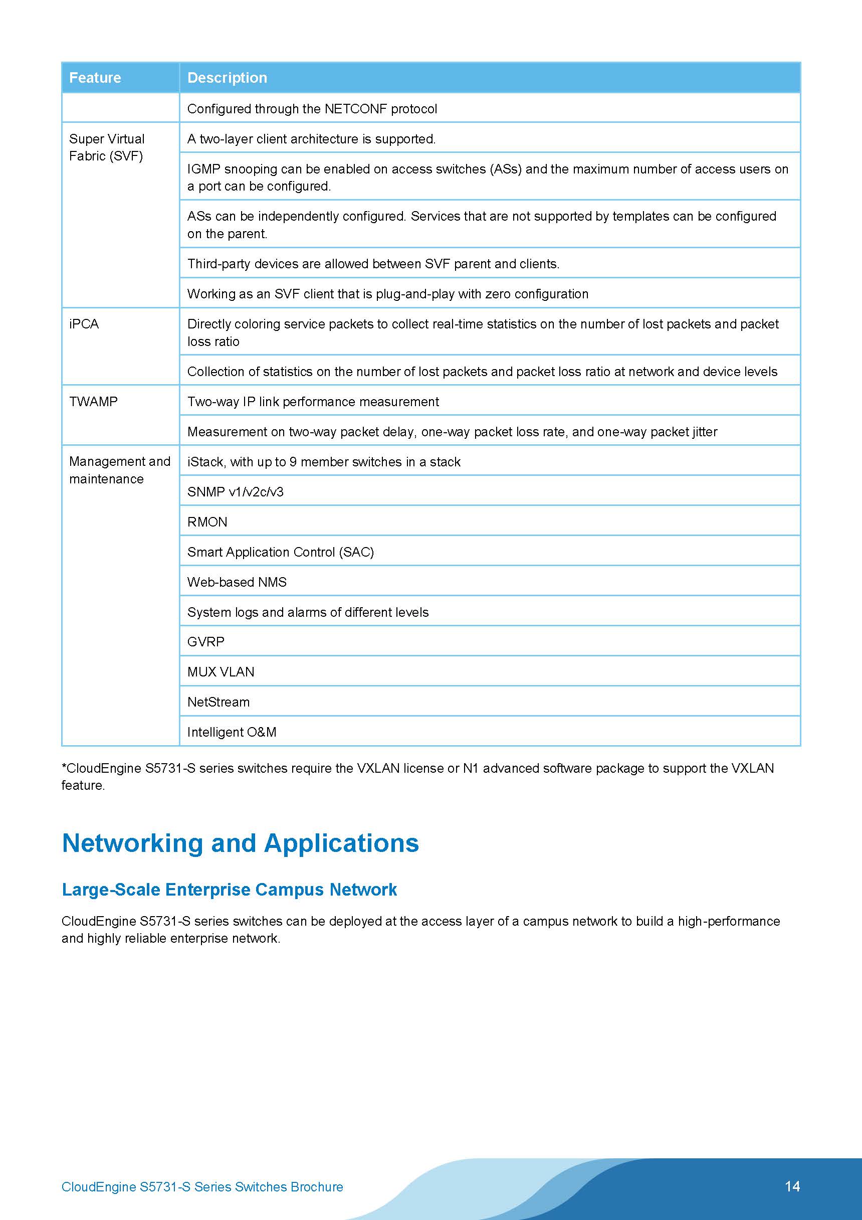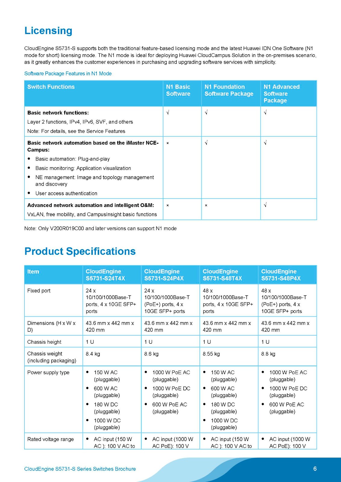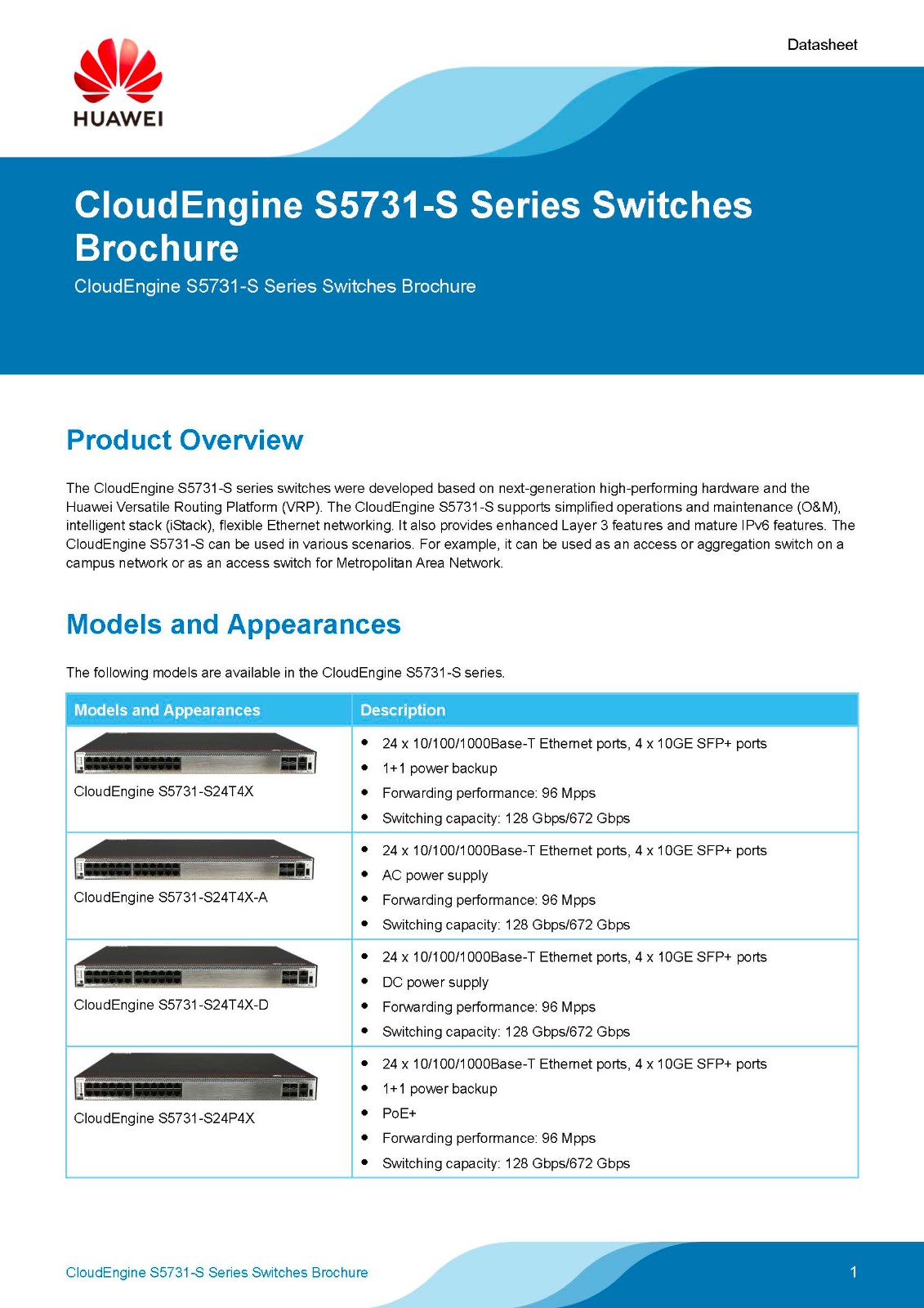 The CloudEngine S5731-S series offers a range of standard gigabit access switches, with all-GE electrical/optical ports and fixed 10 GE uplink ports.
