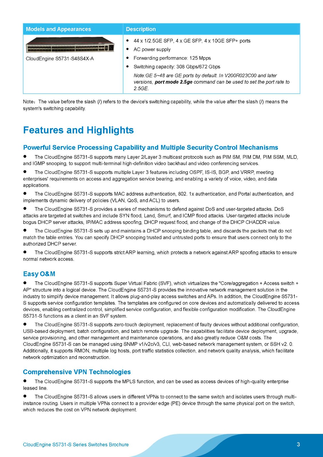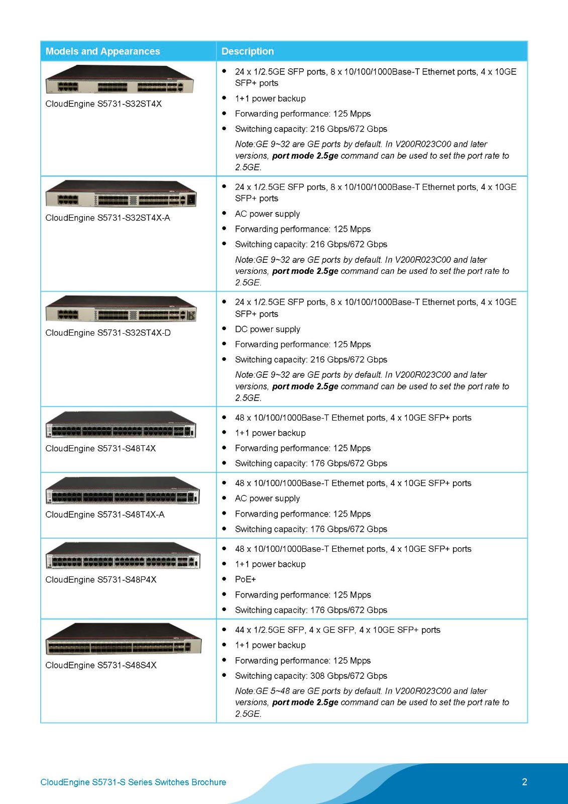 The CloudEngine S5731-S series multi-GE switches are next-generation gigabit access switches that offer multi-GE (GE/2.5GE/10GE) electrical downlink ports and 10GE/40GE optical uplink ports.