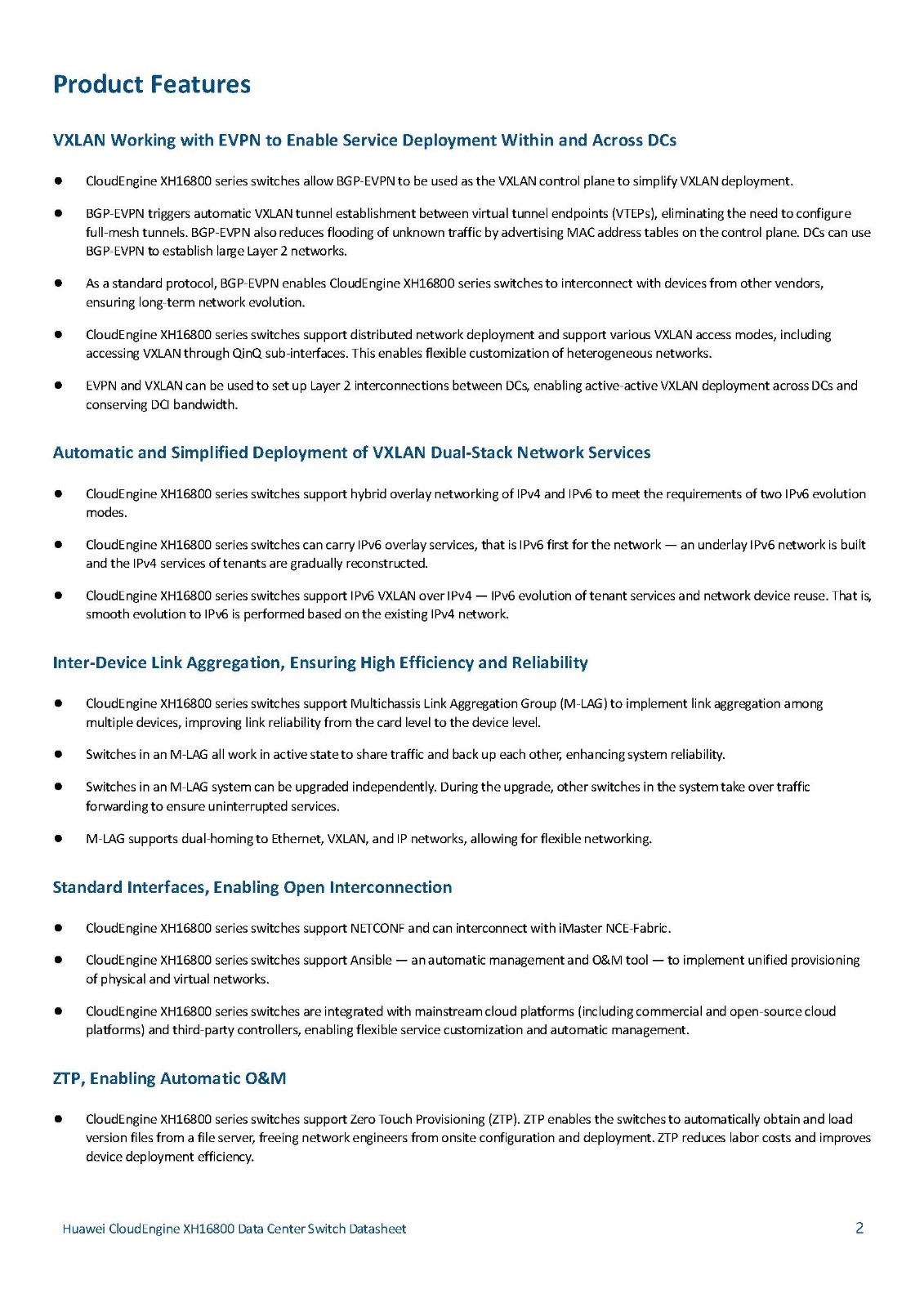 Running on Huawei's next-generation YunShan operating system, CloudEngine XH16800 series switches deliver stable, reliable, and high performance Layer 2 and Layer 3 switching services, and provide customers with an intelligent, simple, secure, and open DC cloud network platform.