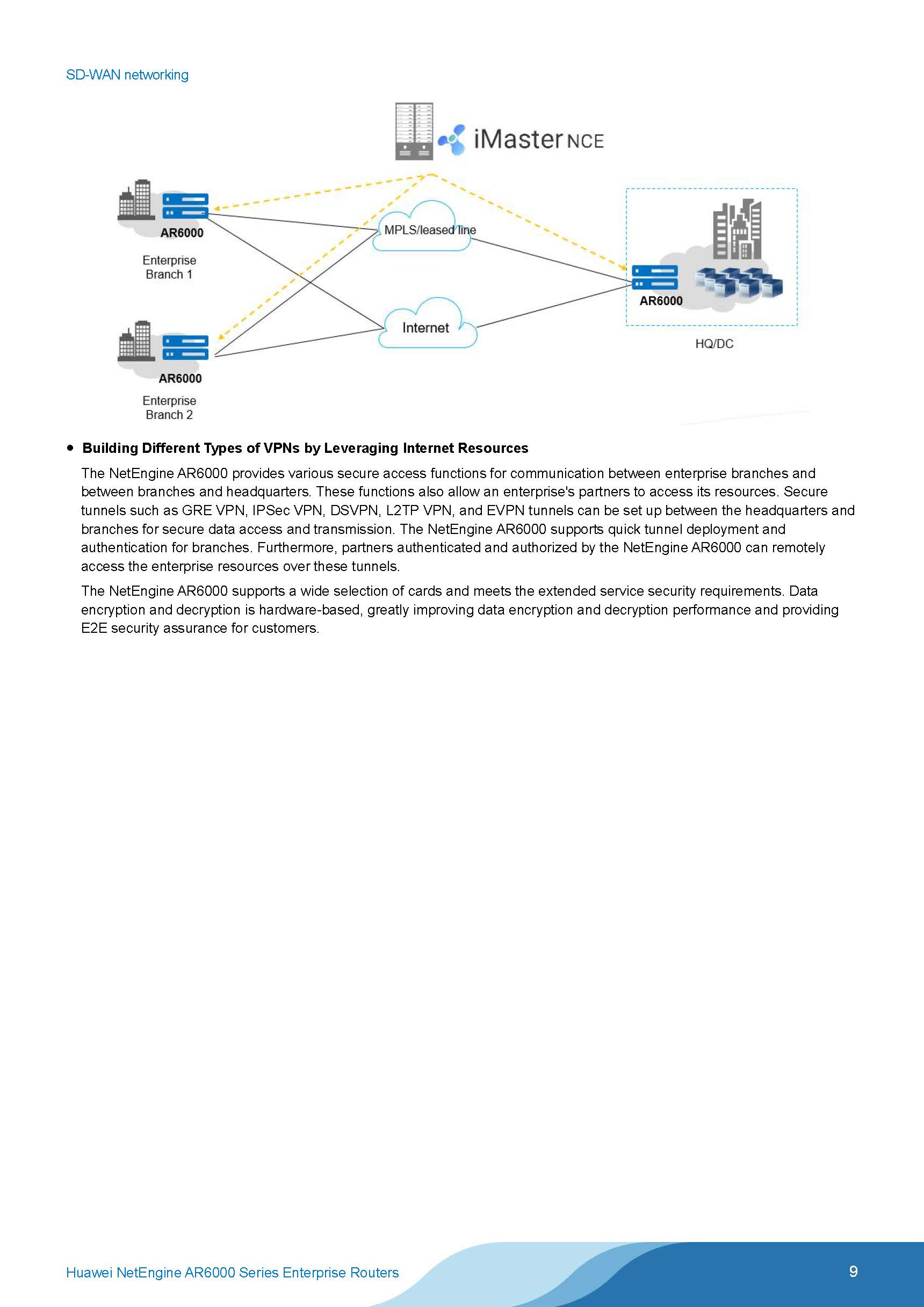 The industry's first enterprise-class Access Routers (ARs) designed for the cloud era, the NetEngine AR6200 series features 5G ultra-broadband uplink and boasts a forwarding performance that's three times the industry average. Offering diverse features — supporting Software-Defined Wide-Area Network (SD-WAN), cloud management, Virtual Private Network (VPN), Multiprotocol Label Switching (MPLS), security, and voice — the series also excels at coping with uplink traffic surges and promoting diversified service development.