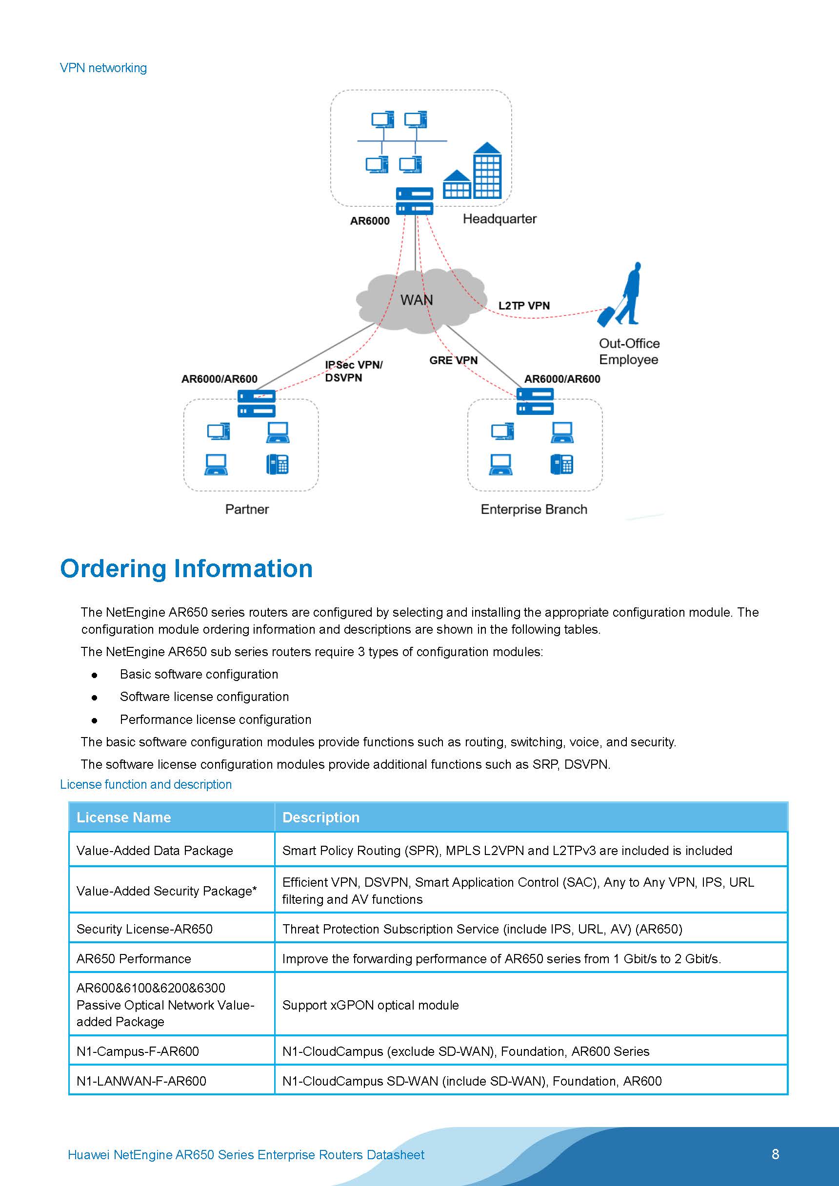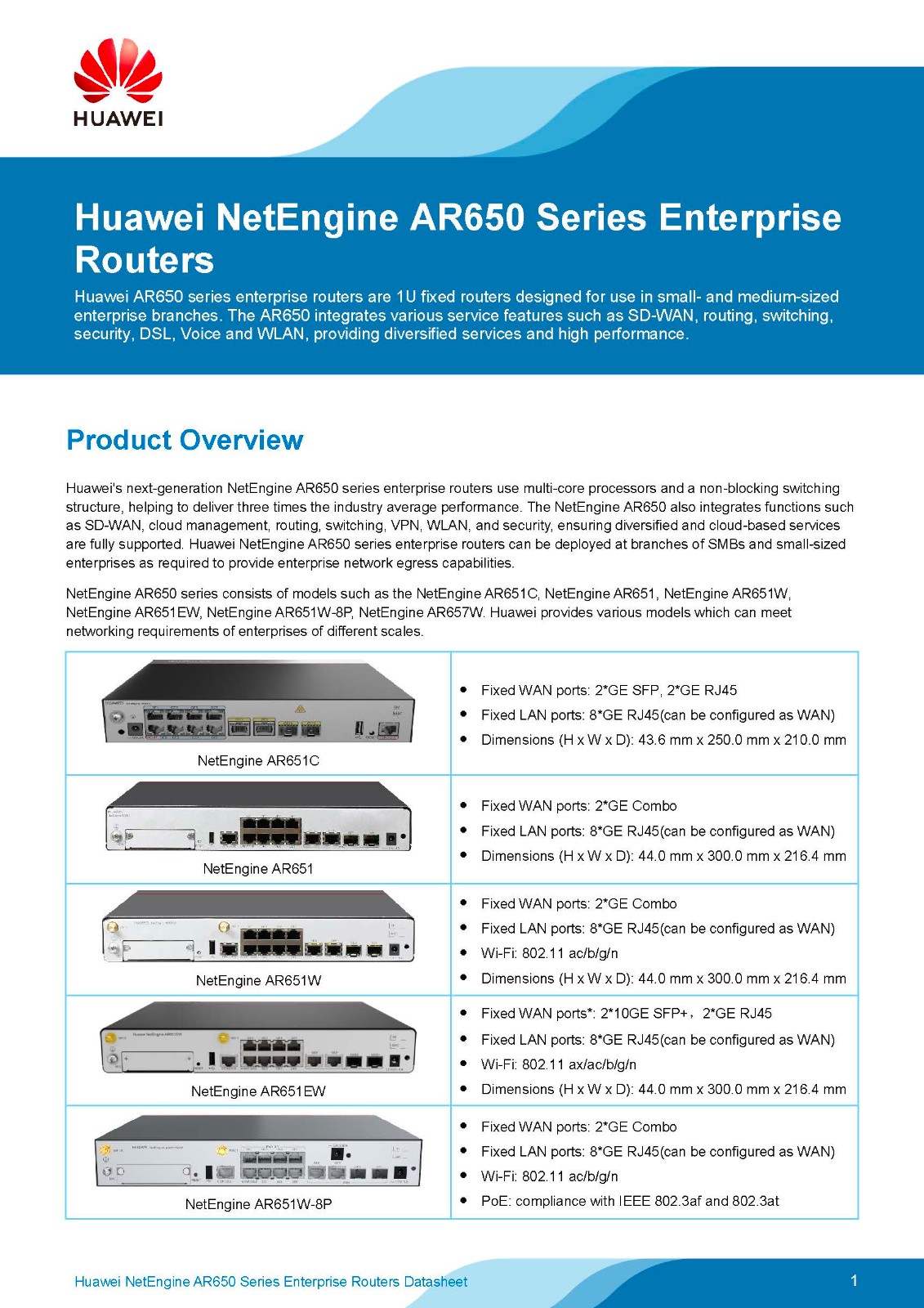 The industry's first enterprise-class Access Routers (ARs) designed for the cloud era, the NetEngine AR650 series features 4G ultra-broadband uplink and boasts a forwarding performance that's three times the industry average. Offering diverse features — supporting Software-Defined Wide-Area Network (SD-WAN), cloud management, Virtual Private Network (VPN), Multiprotocol Label Switching (MPLS), and security — the series also excels at coping with uplink traffic surges and promoting diversified service development.