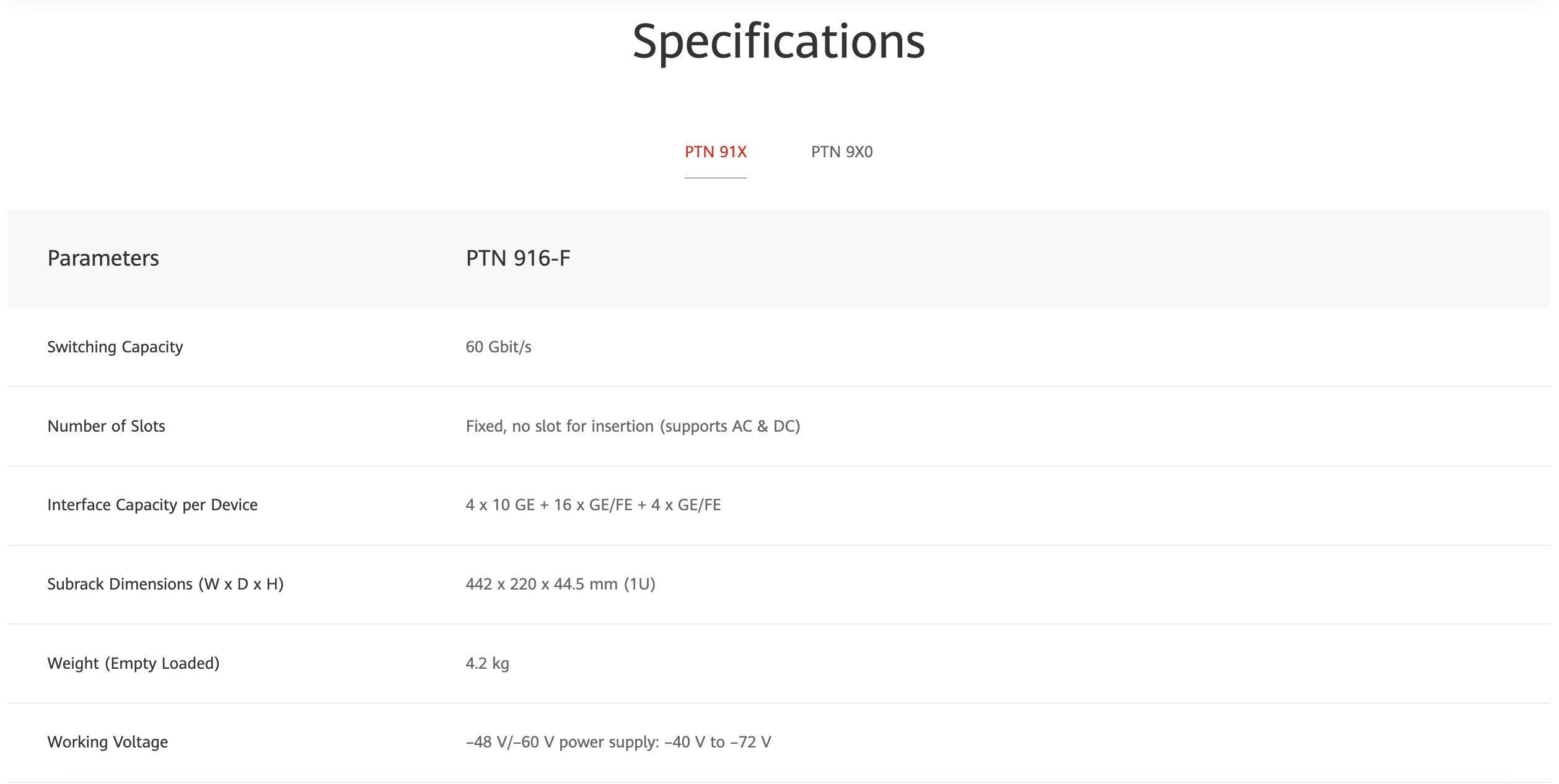 The PTN 900 series features next-generation multi-service access devices oriented to packet transport applicable to the access side of carrier networks. Product highlights include a compact design, flexible installation, and easy Operations and Maintenance (O&M). With benefits such as any media access, synchronization, and management, PTN 900 can work with other products to form an E2E packet transport network, reducing network construction and Total Cost of Ownership (TCO), and improving service deployment and network O&M efficiency.