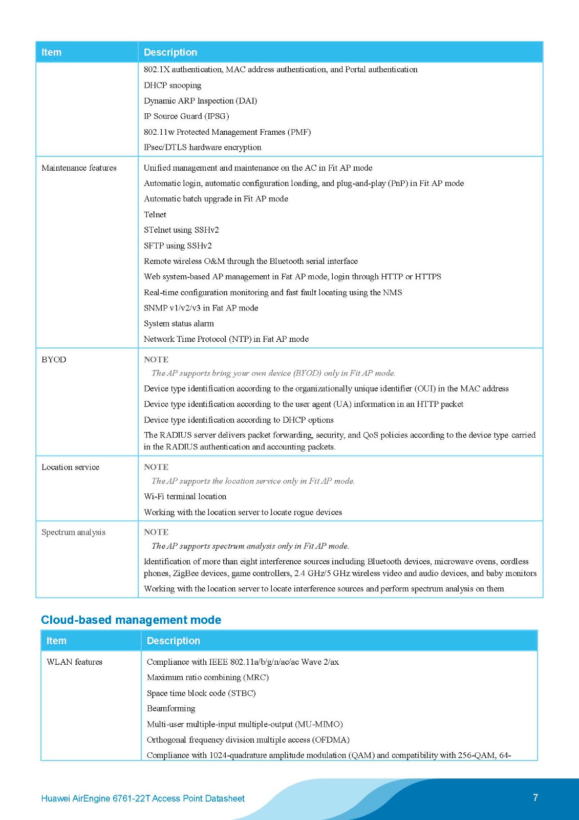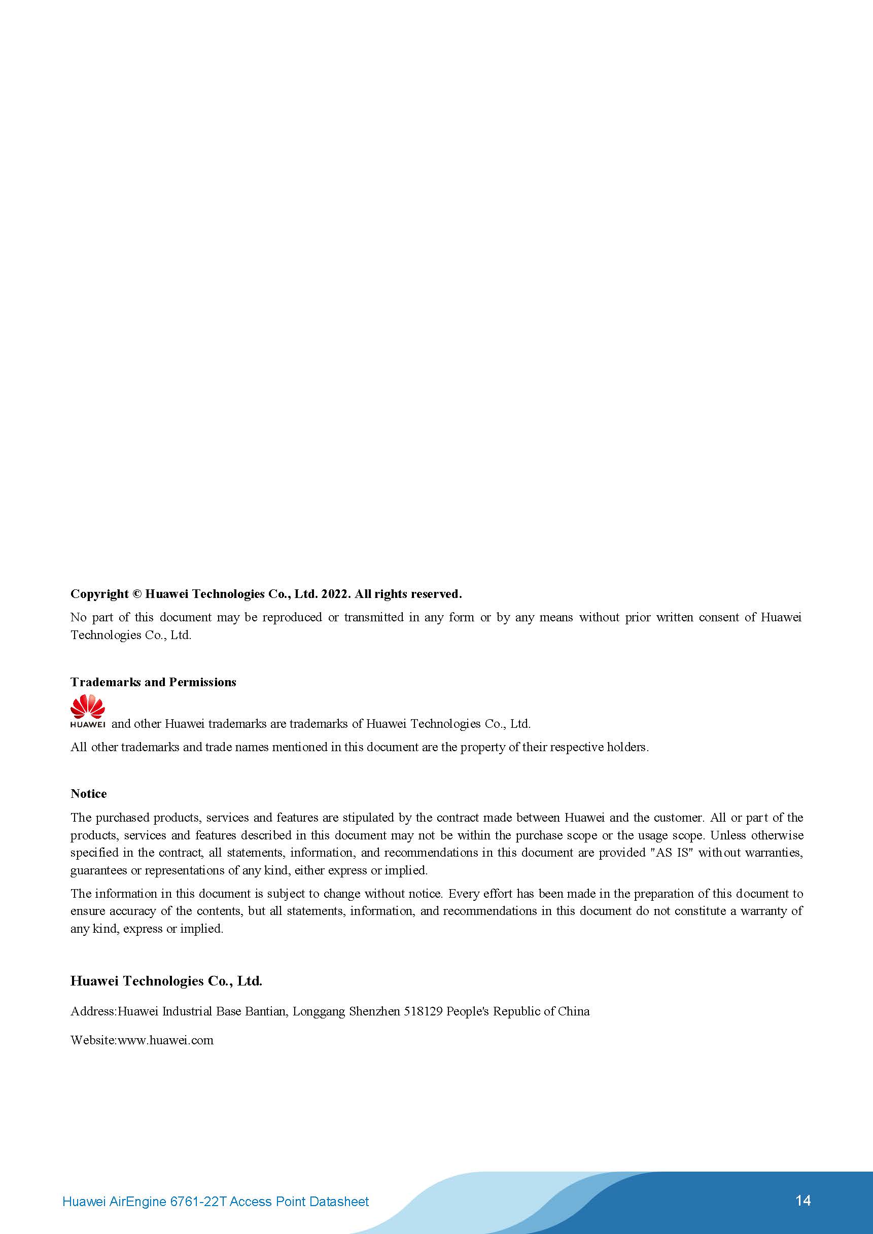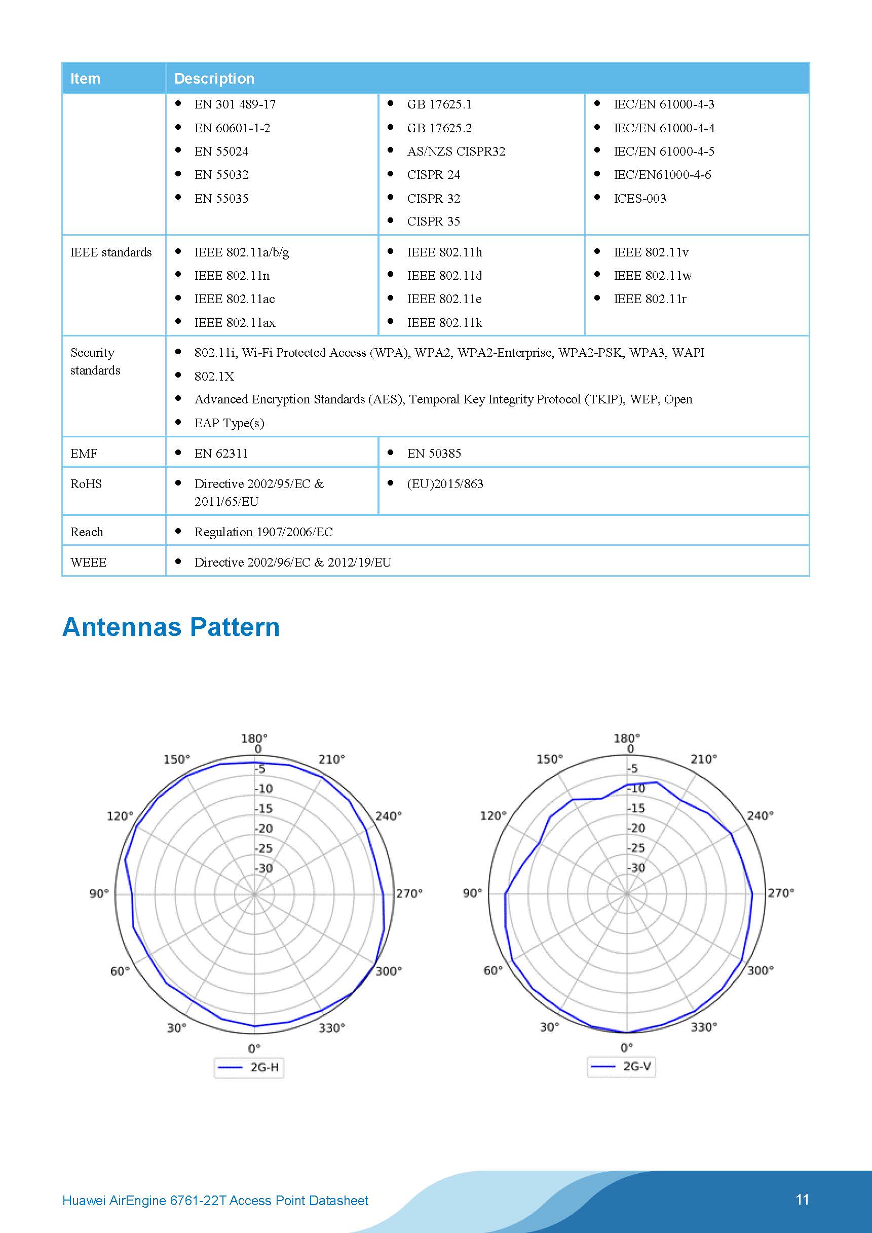 Compliant with the Wi-Fi 6 (802.11ax) standard, Huawei AirEngine 6761-22T is an indoor Wi-Fi 6 Extended (Wi-Fi 6E) Access Point (AP) with built-in Smart Antennas and a triple-radio design. Boasting eight spatial streams and a maximum device rate of 6.575 Gbit/s — 0.575 Gbit/s at 2.4 GHz, 1.2 Gbit/s at 5 GHz, and 4.8 Gbit/s at 6 GHz — AirEngine 6761-22T is designed for enterprise offices, stadiums, education institutions, and manufacturing scenarios.