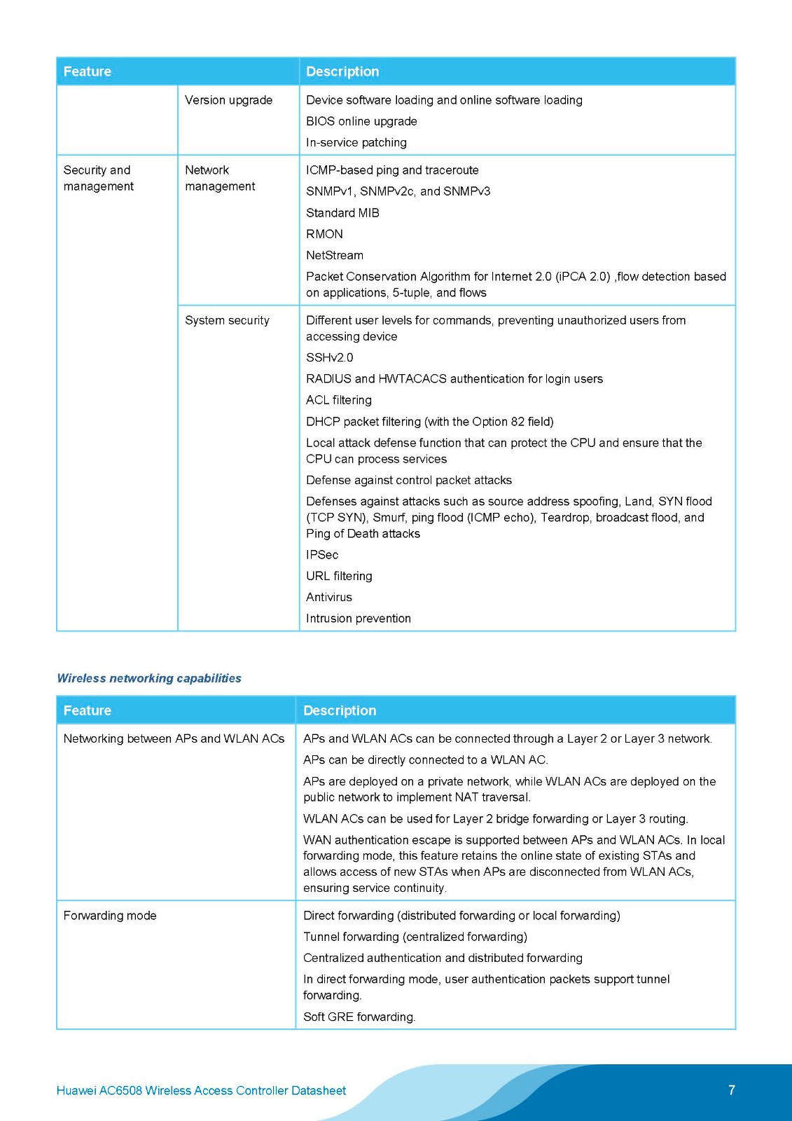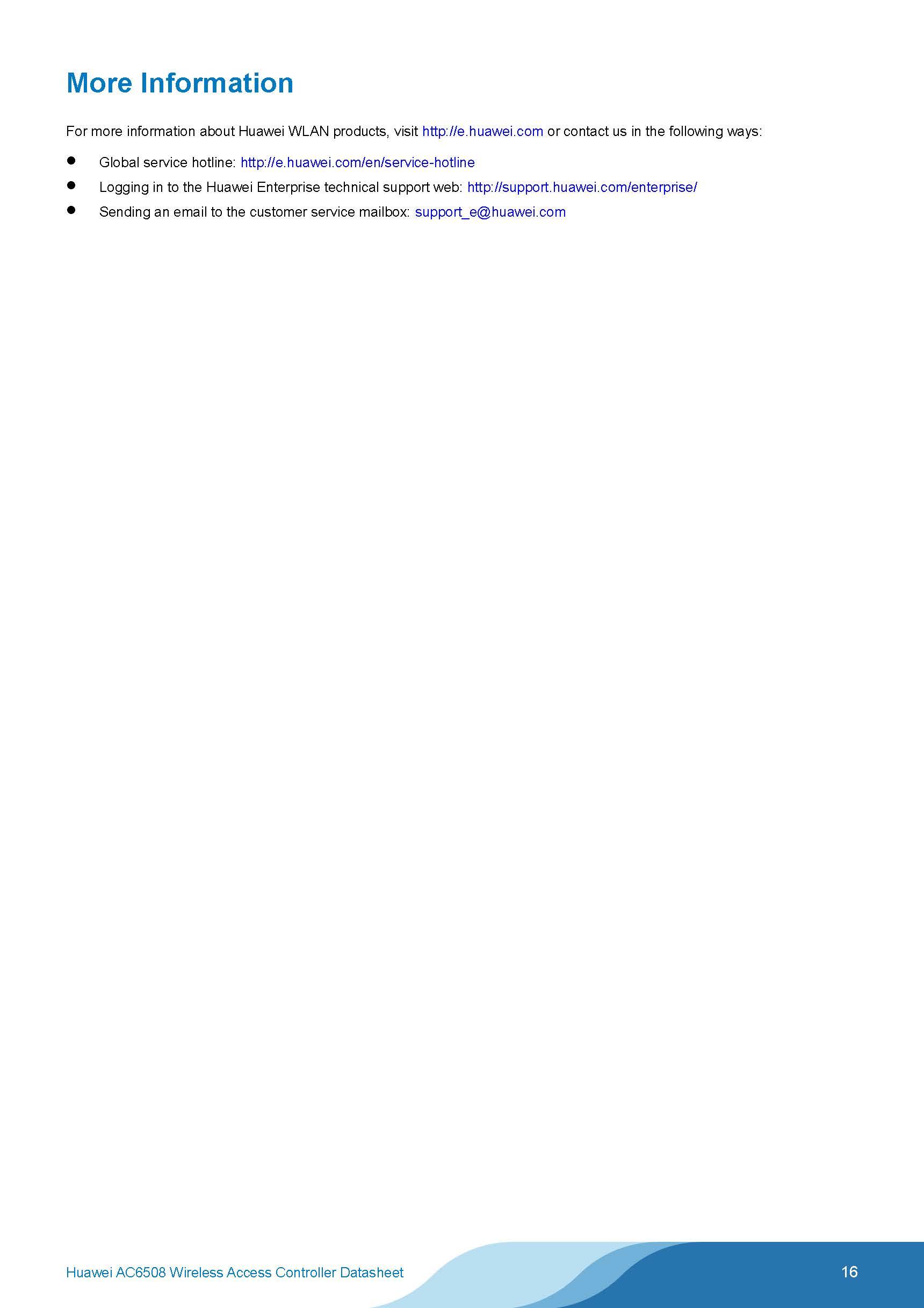 When used with Huawei APs, the AC6508 can be used to construct small- and medium-sized campus networks, enterprise office networks, wireless Metropolitan Area Networks (MANs), and hotspot coverage networks.
