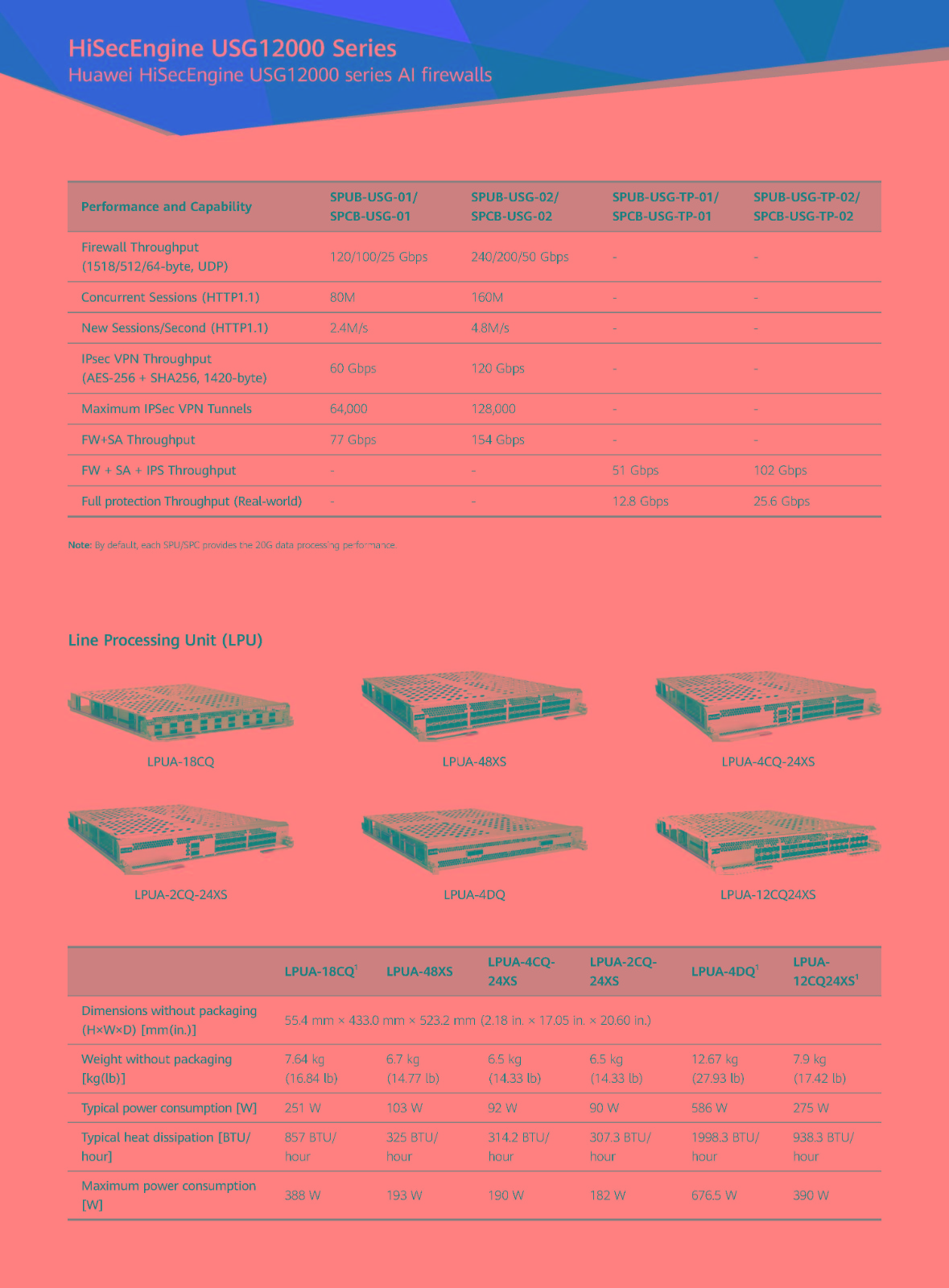 An advanced hardware architecture design and an array of energy conservation technologies slash energy consumption, while a full lineup of Line Interface Processing Units (LPUs) — with a per-slot interface density of up to 18 x 100 GE — meets heavy-bandwidth traffic requirements.