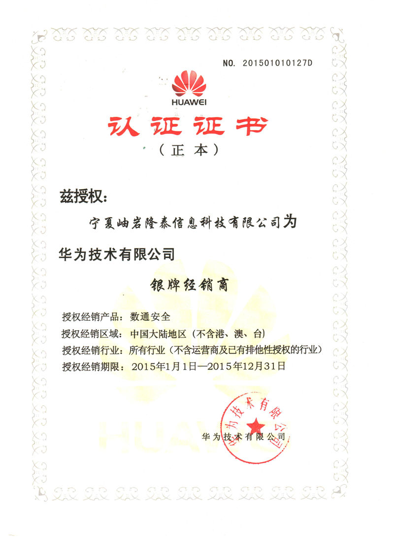 Ningxia Xiuyan Longtai Information Technology Co., Ltd. 2015 Security Distribution Silver Reseller