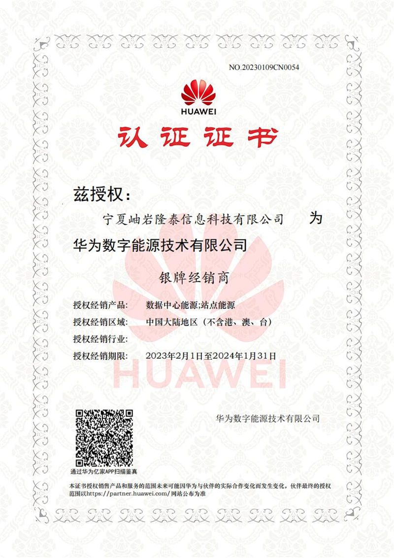 Ningxia Xiuyan Longtai Information Technology Co., Ltd. 2023 Silver Reseller for Data Center Energy & Site Energy