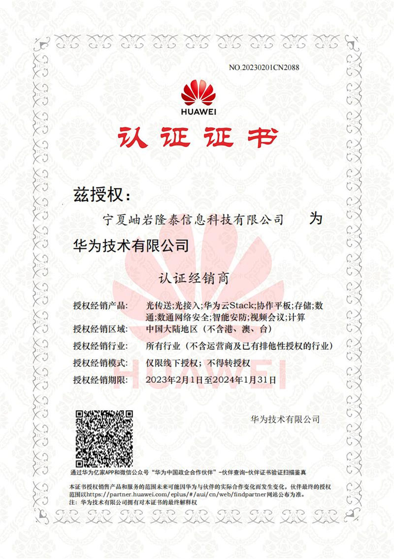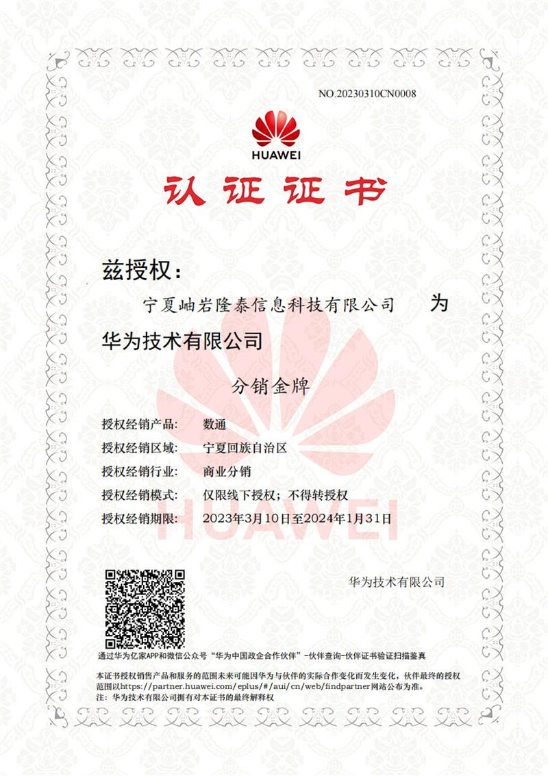 Ningxia Xiuyan Longtai Information Technology Co., Ltd. 2023 Gold Distributor for Data Communication Certificate