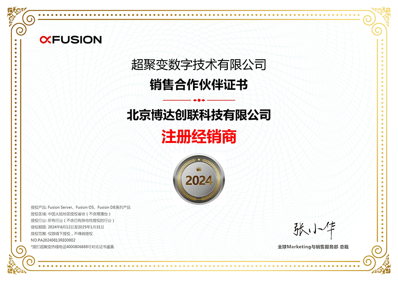 超聚变销售合作伙伴证书
